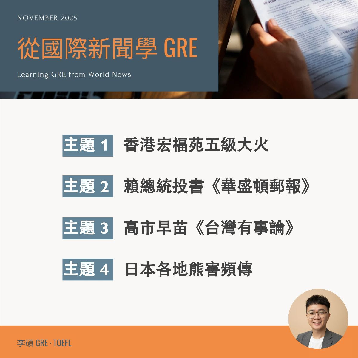 在知名的外媒中 (如 The New York Times, The Guardian等),常常可以⾒得 GRE 程度的學術單字。這些新聞會⽤上這麼⾼階的單字,並⾮為了炫技,⽽是因為這些字詞,正是可以⽣動且精確描述⼀個狀態或事件的⽤字。⽽不管你是否為 GRE 考⽣,這些新聞都是進階英語學習者很值得參閱的素材。